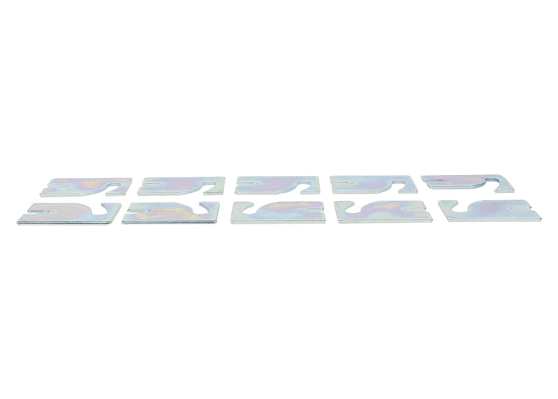 Benefit Note: To be used on Whiteline camber/caster adjusters as well as factory OEM brackets. These shims provide additional camber or caster for wheel alignment fixes or performance applications. To be used on Whiteline camber/caster adjusters as well as factory OEM brackets. These shims provide additioal camber or caster for wheel alignment fixes or performance applications. *All prices shown on the Whiteline website include GST. You will not be charged any additional fees related to tax.