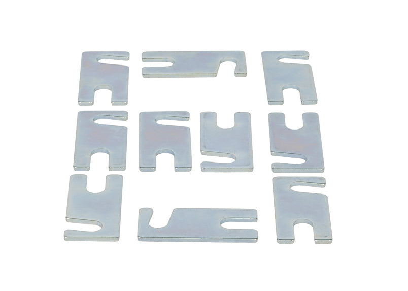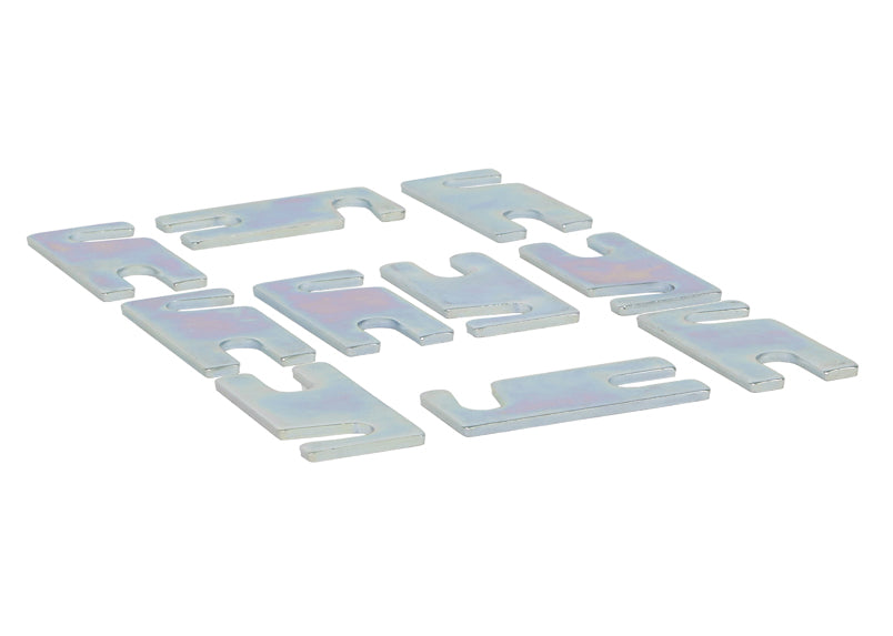 Benefit Note: To be used on Whiteline camber/caster adjusters as well as factory OEM brackets. These shims provide additional camber or caster for wheel alignment fixes or performance applications. To be used on Whiteline camber/caster adjusters as well as factory OEM brackets. These shims provide additional camber or caster for wheel alignment fixes or performance applications. *All prices shown on the Whiteline website include GST. You will not be charged any additional fees related to tax.