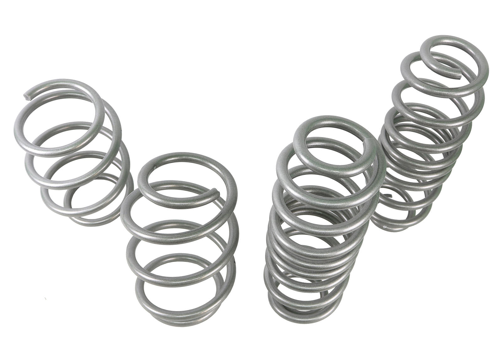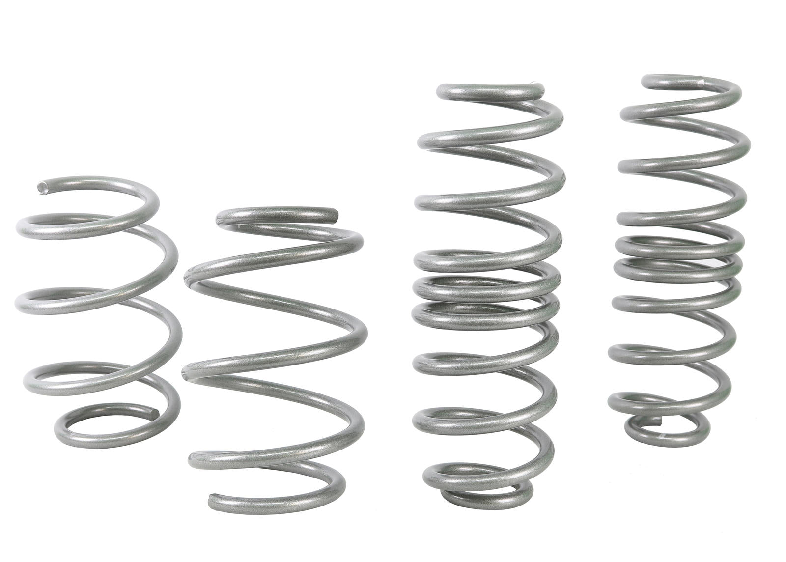 Benefit Note: Whiteline Springs deliver improved vehicle performance whilst maintaining safety and ride quality characteristics. This kit contains 3.5kg/mm (194lb/in) front rated springs that provide a 30mm drop while the 3.8kg/mm (210lb/in) rated rears deliver a desirable 30mm to the vehicle. By lowering the vehicles centre of gravity, the unique and progressive rate coil design not only improve performance but enhance overall appearance. Developed and manufactured in Europe from the highest quality materials, coating and to the finest tolerances guaranteeing exact fitment. Whiteline Springs are engineered for optimal balance with OEM and aftermarket shocks. For total grip activation match with Whiteline Sway Bar and Essentials kit for unrivalled handling and optimal vehicle performance. Whiteline Springs deliver improved vehicle performance whilst maintaining safety and ride quality characteristics. This kit contains 3.3kg/mm (185lb/in) front rated springs that provide a 25mm drop while the 2.9kg/mm (162lb/in) rated rears deliver a desirable 25mm to the vehicle. By lowering the vehicles centre of gravity, the unique and progressive rate coil design not only improve performance but enhance overall appearance. Developed and manufactured in Europe from the highest quality materials, coating and to the finest tolerances guaranteeing exact fitment. Whiteline Springs are engineered for optimal balance with OEM and aftermarket shocks. For total grip activation match with Whiteline Sway Bar and Essentials kit for unrivalled handling and optimal vehicle performance. *All prices shown on the Whiteline website include GST. You will not be charged any additional fees related to tax.