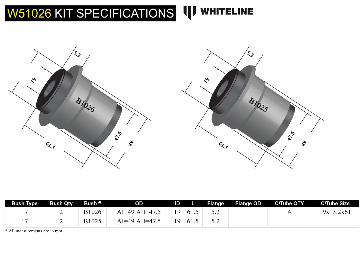 Worn front control arm bushings have a huge influence on vehicle stability, steering precision and braking efficiency. Replace worn bushings to as new condition utilising Whiteline's advanced synthetic elastomer bushings with core characteristics ensuring superior elasticity, memory and outright durability for all forms of driving applications. Worn front control arm bushings have a huge influence on vehicle stability, steering precision and braking efficiency. Replace worn bushings to as new condition utilising Whiteline's advanced synthetic elastomer bushings with core characteristics ensuring superior elasticity, memory and outright durability for all forms of driving applications. *All prices shown on the Whiteline website include GST. You will not be charged any additional fees related to tax.