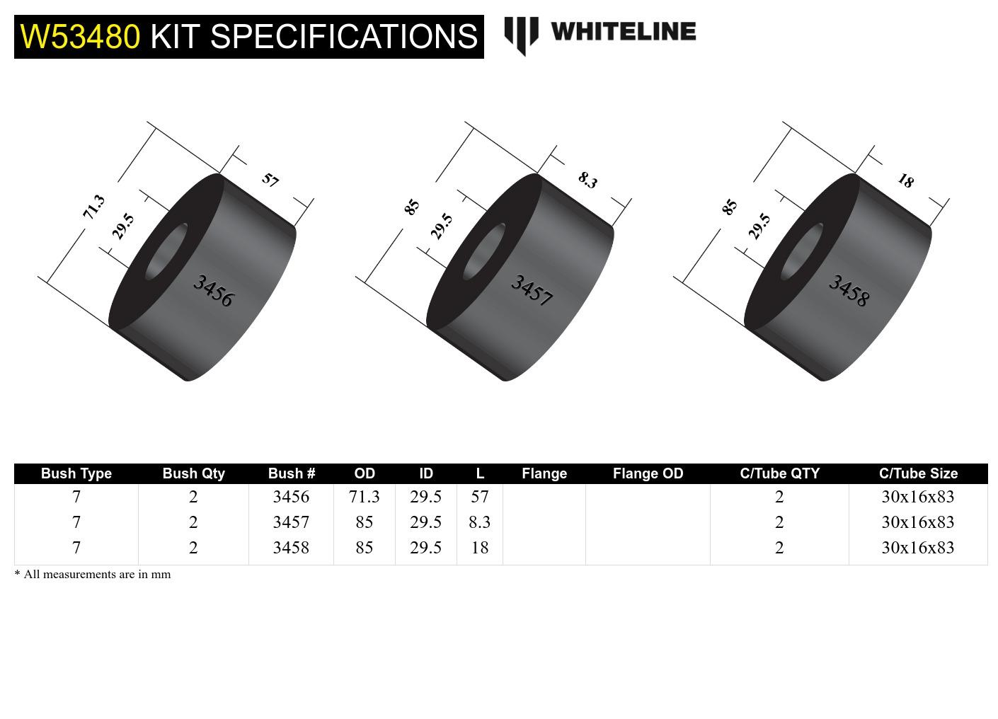 Worn front control arm bushings have a huge influence on vehicle stability, steering precision and braking efficiency. Replace worn bushings to as new condition utilising Whiteline's advanced synthetic elastomer bushings with core characteristics ensuring superior elasticity, memory and outright durability for all forms of driving applications. Worn front control arm bushings have a huge influence on vehicle stability, steering precision and braking efficiency. Replace worn bushings to as new condition utilising Whiteline's advanced synthetic elastomer bushings with core characteristics ensuring superior elasticity, memory and outright durability for all forms of driving applications. *All prices shown on the Whiteline website include GST. You will not be charged any additional fees related to tax.