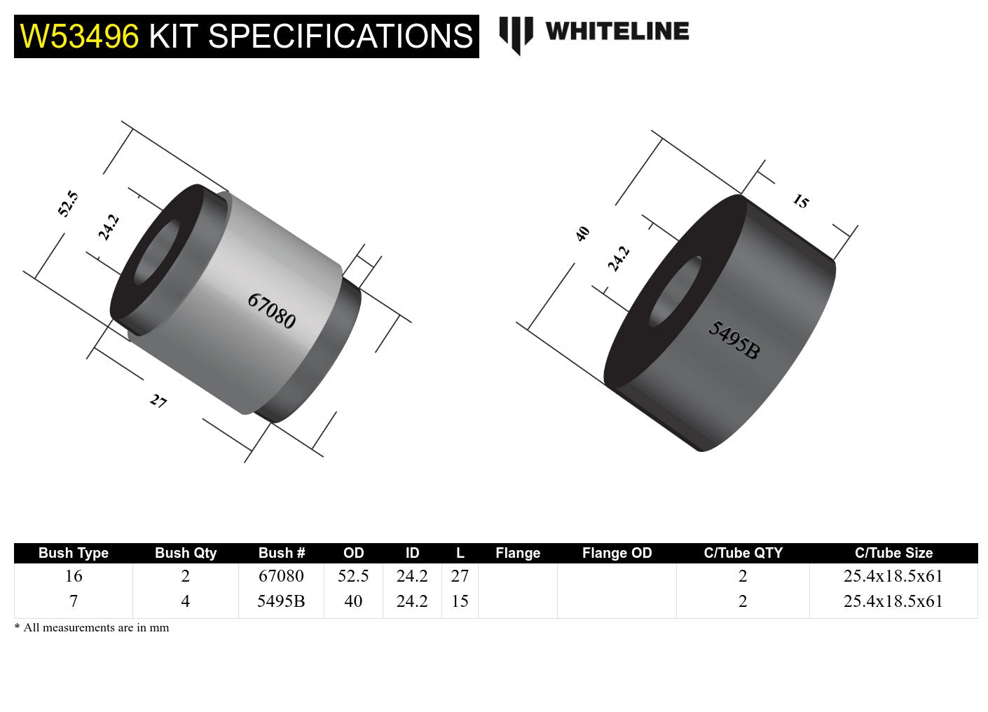 Worn front control arm bushings have a huge influence on vehicle stability, steering precision and braking efficiency. Replace worn bushings to as new condition utilising Whiteline's advanced synthetic elastomer bushings with core characteristics ensuring superior elasticity, memory and outright durability for all forms of driving applications. Worn front control arm bushings have a huge influence on vehicle stability, steering precision and braking efficiency. Replace worn bushings to as new condition utilising Whiteline's advanced synthetic elastomer bushings with core characteristics ensuring superior elasticity, memory and outright durability for all forms of driving applications. *All prices shown on the Whiteline website include GST. You will not be charged any additional fees related to tax.