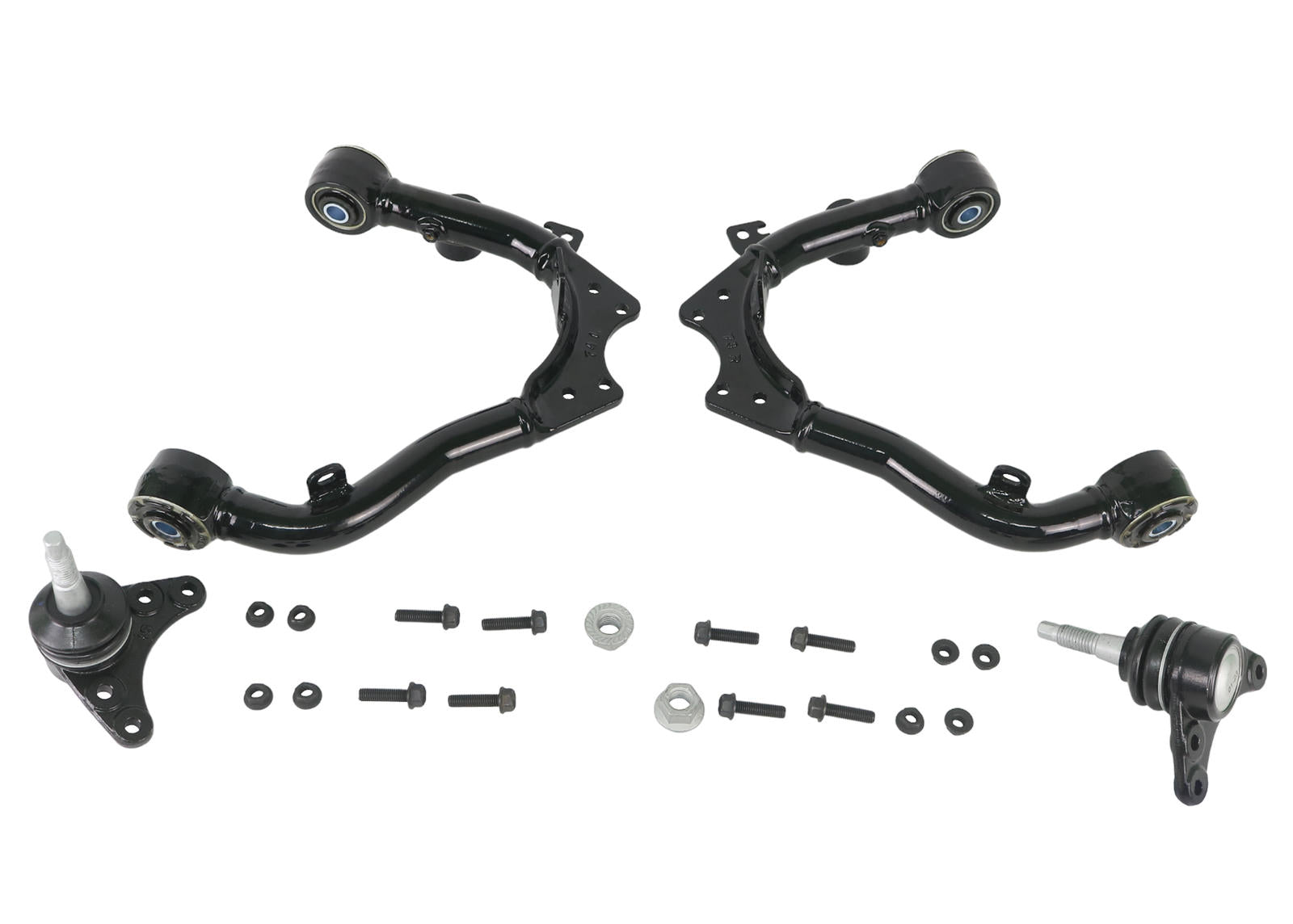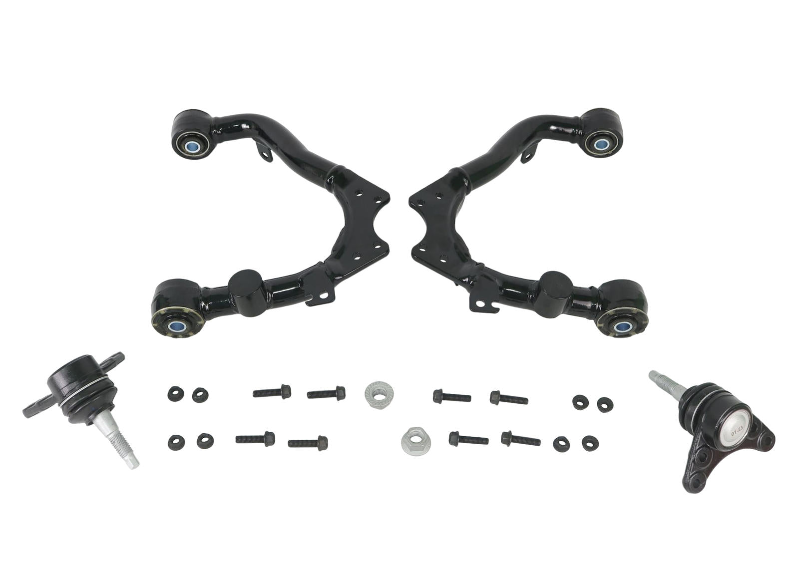 Benefit Note: A short fall of the modern day IFS 4wd is the adjustment range provided for successful wheel alignments, this becomes even more of an issue when the vehicle is lifted by more than 1 inch. Not only does the vehicle run into camber and caster issues, but ball joint articulation and clearance issues to the coil over strut at ride and droop height. The new Whiteline offset UCA (Upper Control Arm) is an all-in-one solution for any vehicle that has been lifted between 30mm and 70mm. Providing an increase between +2.5 and +3.5 degrees of caster and up to 1.5 degrees of negative camber increase (figures quoted are based off an approximate 50mm/ 2 inch) along with greater clearance to the coil over strut and more articulation of the arm by virtue of new maintenance free GIIRO bushing technology. *All prices shown on the Whiteline website include GST. You will not be charged any additional fees related to tax.