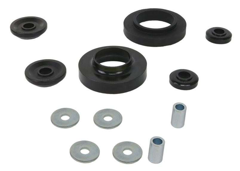 Hard working or lifted commercial or 4x4 vehicles tend to suffer from premature wear of the upper strut mount/ shock absorber bushings. Designed to work with the original OEM strut top, each Whiteline kit contains both upper strut mount pads and shock absorber pin bushings to restore the strut mount to as new condition. Hard working or lifted commercial or 4x4 vehicles tend to suffer from premature wear of the upper strut mount/ shock absorber bushings. Designed to work with the original OEM strut top, each Whiteline kit contains both upper strut mount pads and shock absorber pin bushings to restore the strut mount to as new condition. *All prices shown on the Whiteline website include GST. You will not be charged any additional fees related to tax.