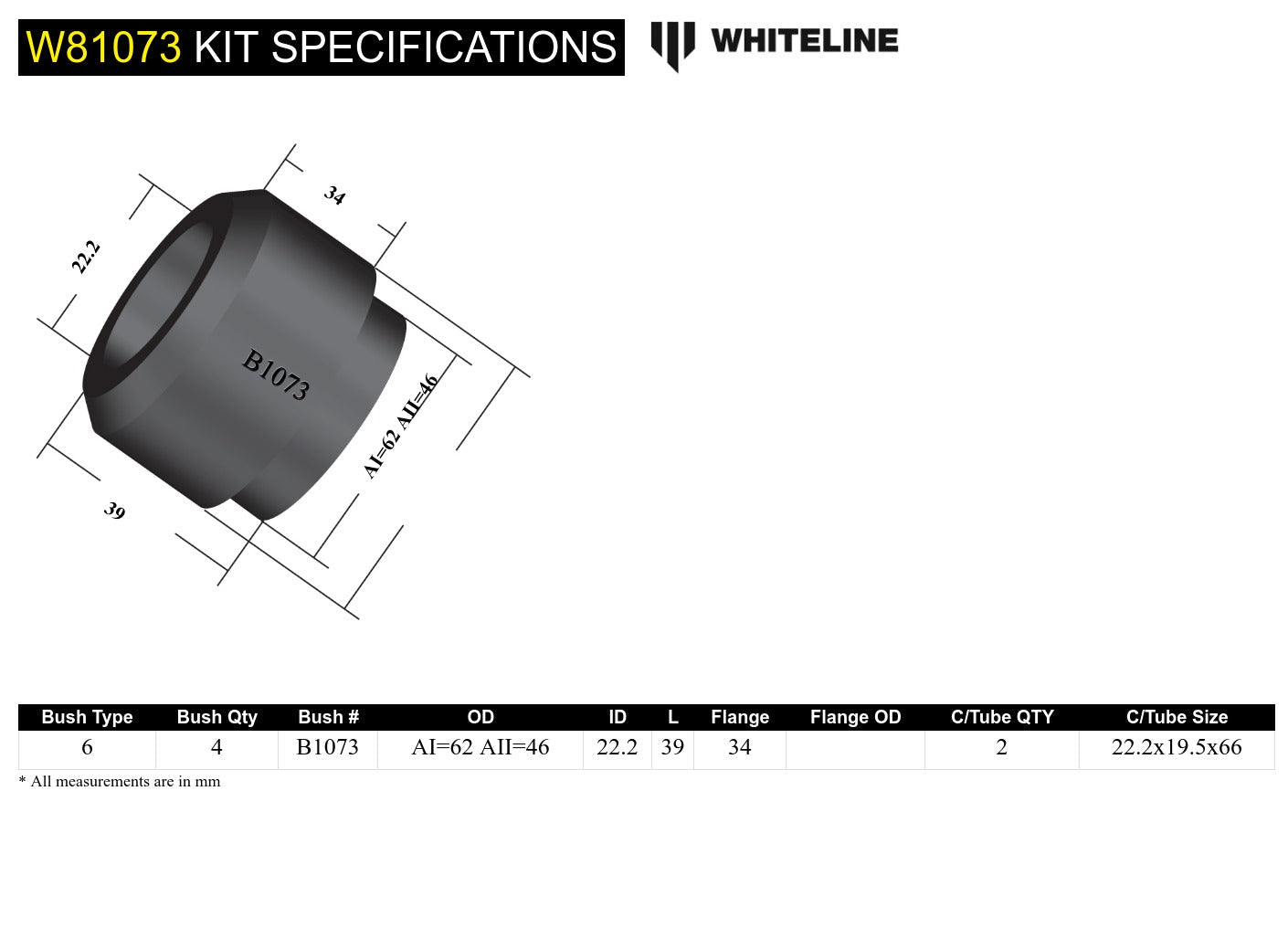 Not many know but worn suspension bushings have an effect on braking performance. In particular these bushings tend to absorb most of the loads under braking resulting in severe wear and reduced braking efficiency over time. Replace these worn parts with Whiteline synthetic elastomer bushings that offer long lasting durability for a safer more predictable vehicle. Not many know but worn suspension bushings have an effect on braking performance. In particular these bushings tend to absorb most of the loads under braking resulting in severe wear and reduced braking efficiency over time. Replace these worn parts with Whiteline synthetic elastomer bushings that offer long lasting durability for a safer more predictable vehicle. *All prices shown on the Whiteline website include GST. You will not be charged any additional fees related to tax.