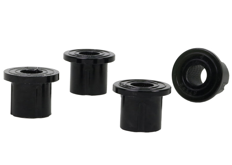 A critical service item for any leaf sprung vehicle. High kilometres and heavy load carrying causes excessive wear on rubber bushings. Whiteline's signature black bushings are made tough and offer outstanding abrasion resistance, high load bearing capability (4WD's, utes and towing), flexibility, increased tensile strength and chemical resistance to oil, grease, ozone and weathering. A critical service item for any leaf sprung vehicle. High kilometres and heavy load carrying causes excessive wear on rubber bushings. Whiteline's signature black bushings are made tough and offer outstanding abrasion resistance, high load bearing capability (4WD's, utes and towing), flexibility, increased tensile strength and chemical resistance to oil, grease, ozone and weathering. *All prices shown on the Whiteline website include GST. You will not be charged any additional fees related to tax.