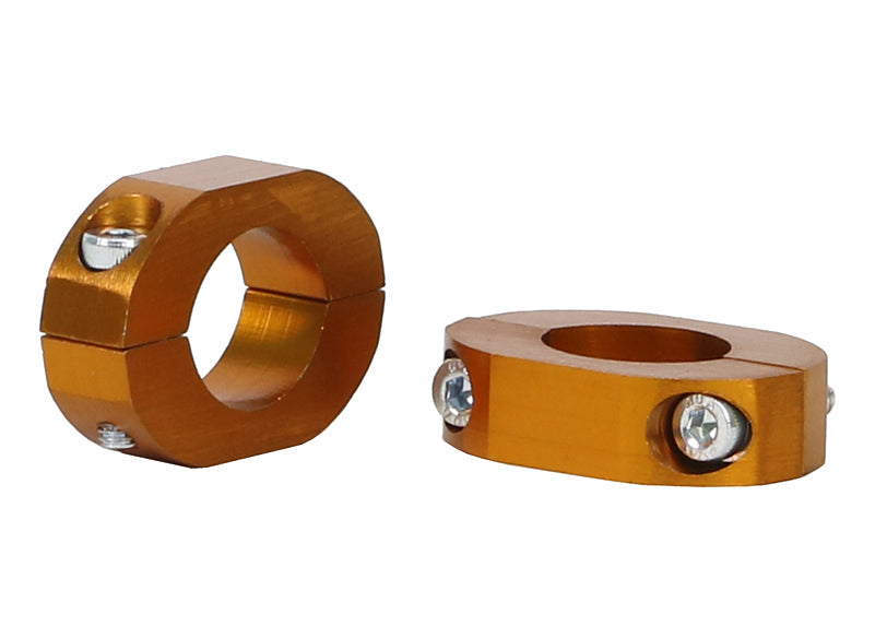 Benefit Note: To suit 20mm diameter sway bars - the DIY (Do It Yourself) alloy lateral locking system can be utilized on both factory and more importantly aftermarket sway bars. The locks are easily installed on car with no need to remove the sway bar to install. They are mounted directly next to the sway bar mounting points and prevent shifting or sideways movement of the sway bar under lateral (cornering) loads. This results in improved sway bar effectiveness whilst preventing fouling of the sway bar on near by chassis and steering components. To suit 20mm diameter sway bars - the DIY (Do It Yourself) alloy lateral locking system can be utilized on both factory and more importantly aftermarket sway bars. The locks are easily installed on car with no need to remove the sway bar to install. They are mounted directly next to the sway bar mounting points and prevent shifting or sideways movement of the sway bar under lateral (cornering) loads. This results in improved sway bar effectiveness whilst preventing fouling of the sway bar on near by chassis and steering components. *All prices shown on the Whiteline website include GST. You will not be charged any additional fees related to tax.