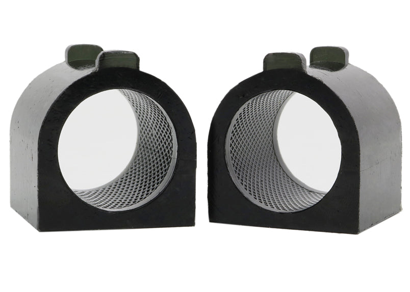 Benefit Note: Designed to fit a 33mm sway bar. Whiteline's sway bar mount bushings not only boasts the latest in bushing material technology but feature a knurled ID specifically designed to retain grease. Backed up by a Limited Lifetime Warranty. Whiteline bushings are made from the latest highest quality synthetic elastomer and designed to synchronize your suspension system for optimal safety, handling, performance, ride quality, longevity and reduced maintenance. They are the most positive link between your vehicles body, springs, struts, arms, bars and shocks. Designed to fit a 33mm sway bar. Whiteline's sway bar mount bushings not only boasts the latest in bushing material technology but feature a knurled ID specifically designed to retain grease. Backed up by a Limited Lifetime Warranty. Whiteline bushings are made from the latest highest quality synthetic elastomer and designed to synchronize your suspension system for optimal safety, handling, performance, ride quality, longevity and reduced maintenance. They are the most positive link between your vehicles body, springs, struts, arms, bars and shocks. *All prices shown on the Whiteline website include GST. You will not be charged any additional fees related to tax.